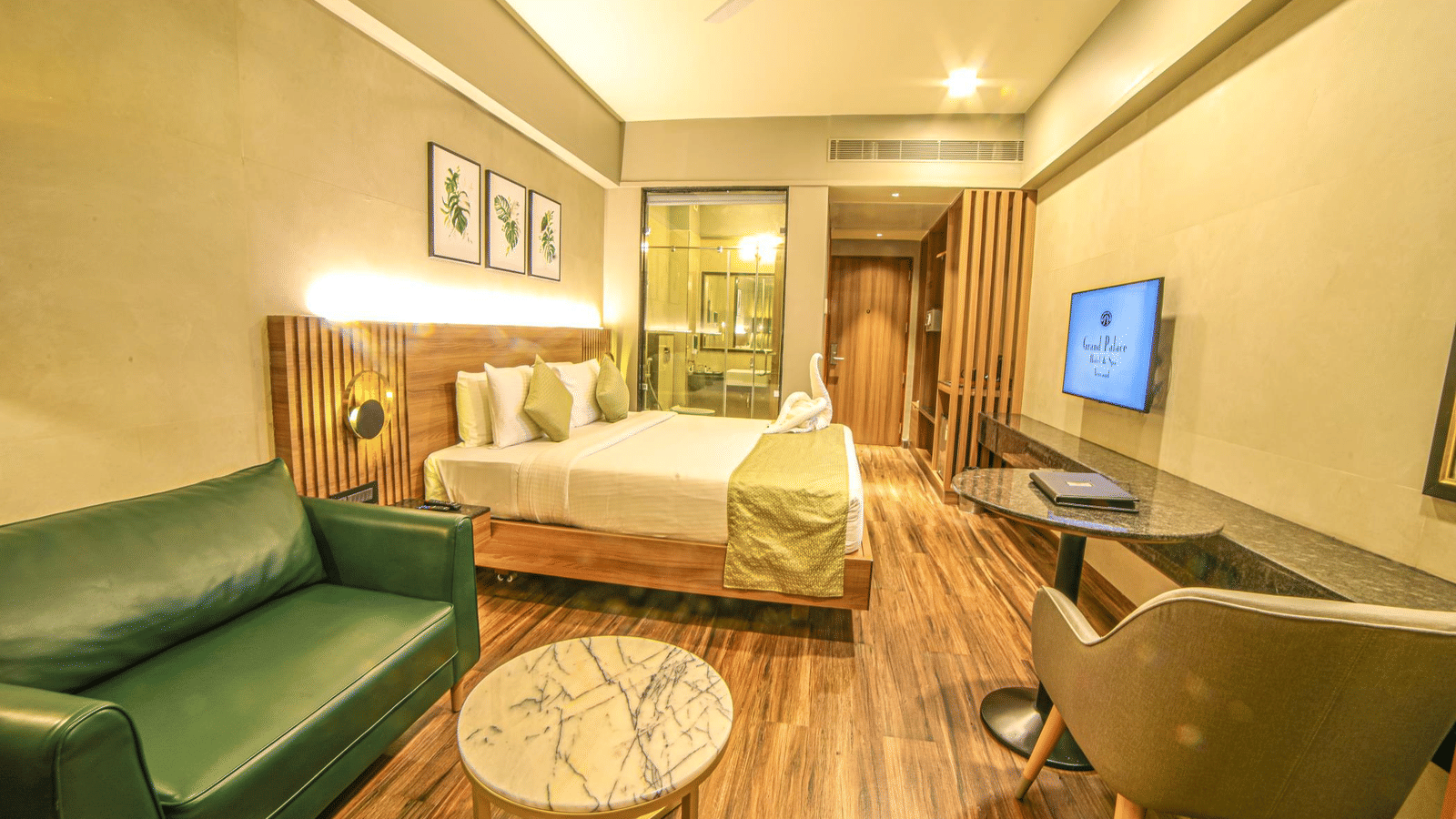 The Standard Room at Grand Palace Yercaud spans 290 sq. ft., offering a spacious retreat with modern amenities tailored for comfort and relaxation. It accommodates up to three guests, perfect for families or small groups. The room’s refined decor and thoughtful design ensure a memorable stay in the heart of Yercaud.